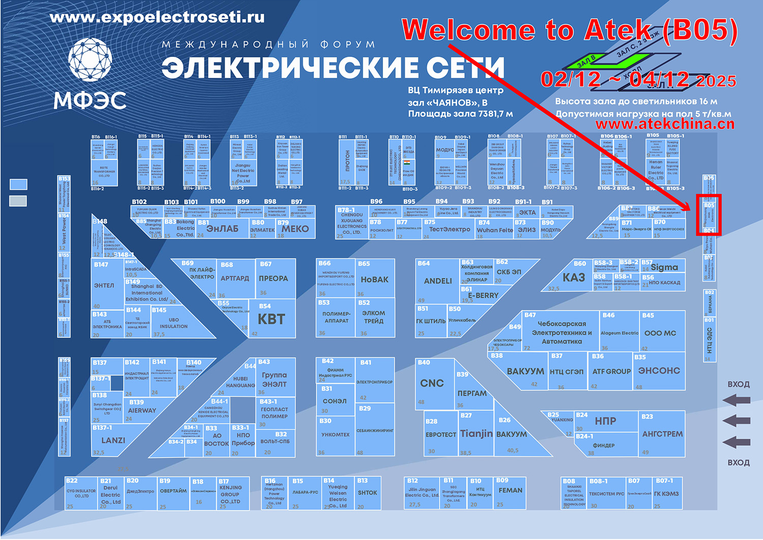 2£® The exhibition map: (we Atek is on B05 of Hall B) https://expoelectroseti.ru/vyistavochnaya-zona/sxema-ekspoziczii